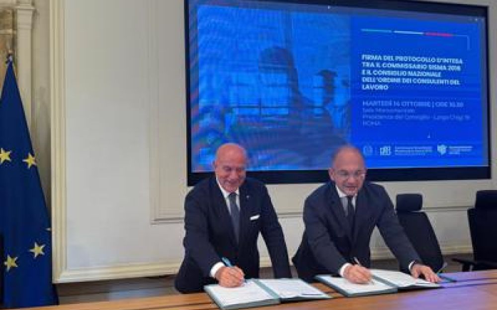 Roma, 14 ott. (Labitalia) – Rafforzare la sicurezza nelle aziende dei territori colpite dal sisma del 2016 e nei cantieri degli interventi di ricostruzione, promuovendo strumenti che favoriscano trasparenza e legalità negli appalti, come l’Asse.Co., e misure previste a livello nazionale, come la patente a crediti e il badge di cantiere. Sono alcuni degli obiettivi del protocollo d’intesa rinnovato oggi presso la Presidenza del consiglio dei ministri dal Consiglio nazionale dell’ordine dei consulenti del lavoro e la Struttura commissariale sisma 2016.