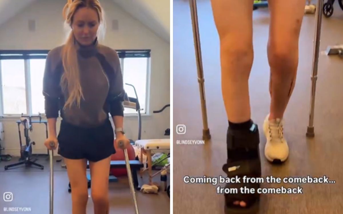 Lindsey Vonn torna a camminare e mostra i primi passi con le stampelle dopo la caduta alle Olimpiadi