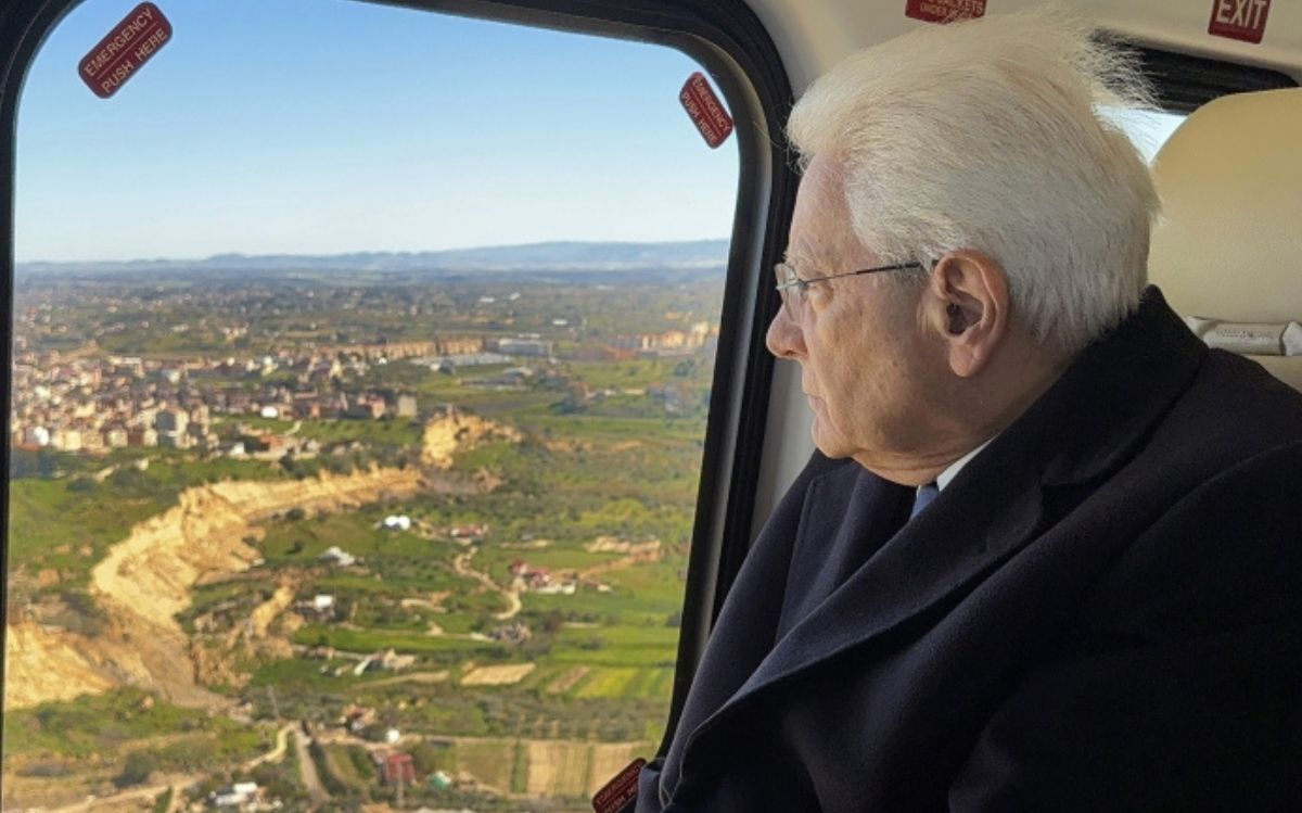 Mattarella in elicottero sorvola l’area della frana a Niscemi – IL VIDEO