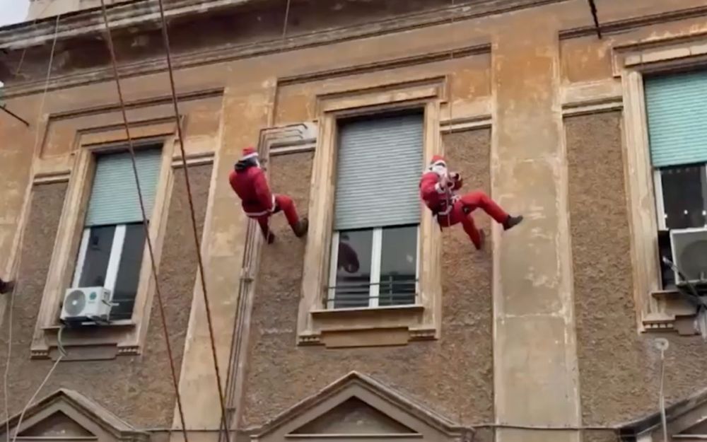 Al policlinico Umberto I di Roma gli agenti del Nocs della Polizia di Stato, vestiti da Babbo Natale, sono “entrati in azione” calandosi dal tetto dell’ospedale e hanno portato i regali ai piccoli pazienti
